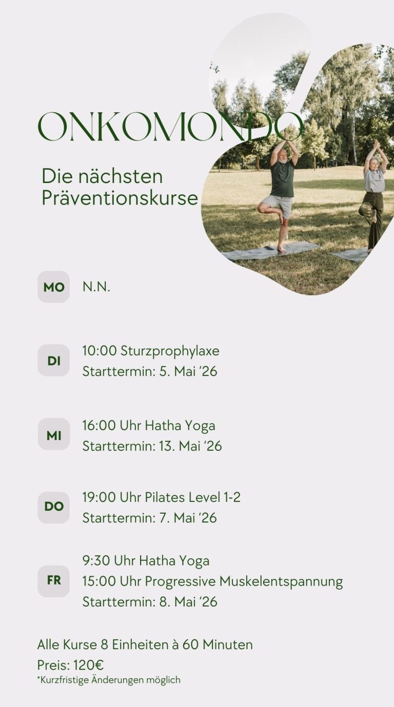 Anmeldungen zu den Präventionskursen sind schon jetzt möglich unter info@onkomondo.de oder über das Kontaktformular